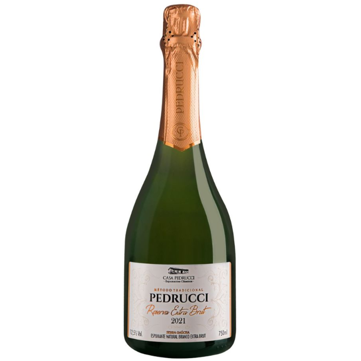 Visual: coloração amarela com reflexos dourados, límpido e brilhante. Perlage elegante com borbulhas delicadas e intensas.